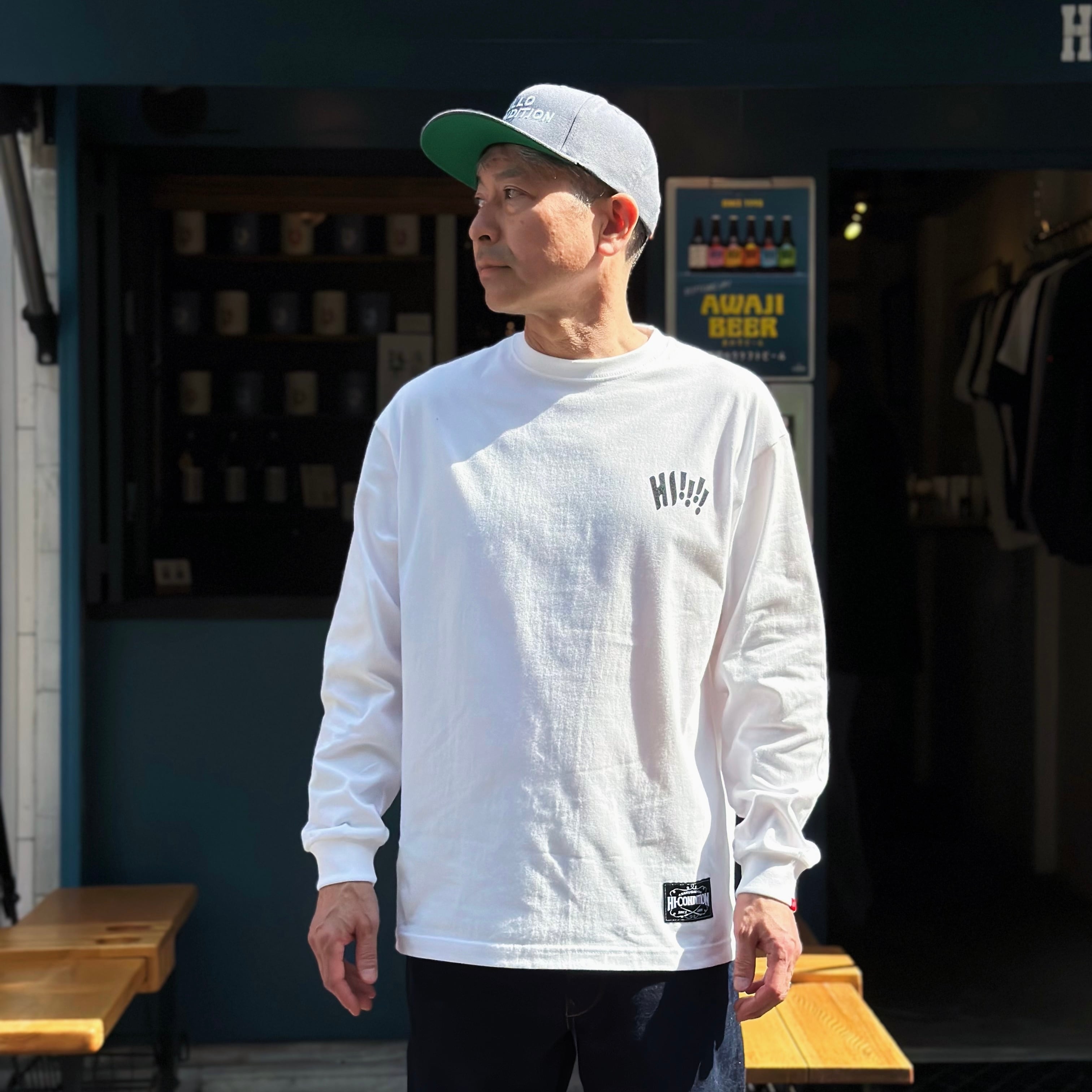 フロントには、シンプルながらも力強い「HI!!!」のワンポイントデザインを配置し、遊び心のあるアクセントに。