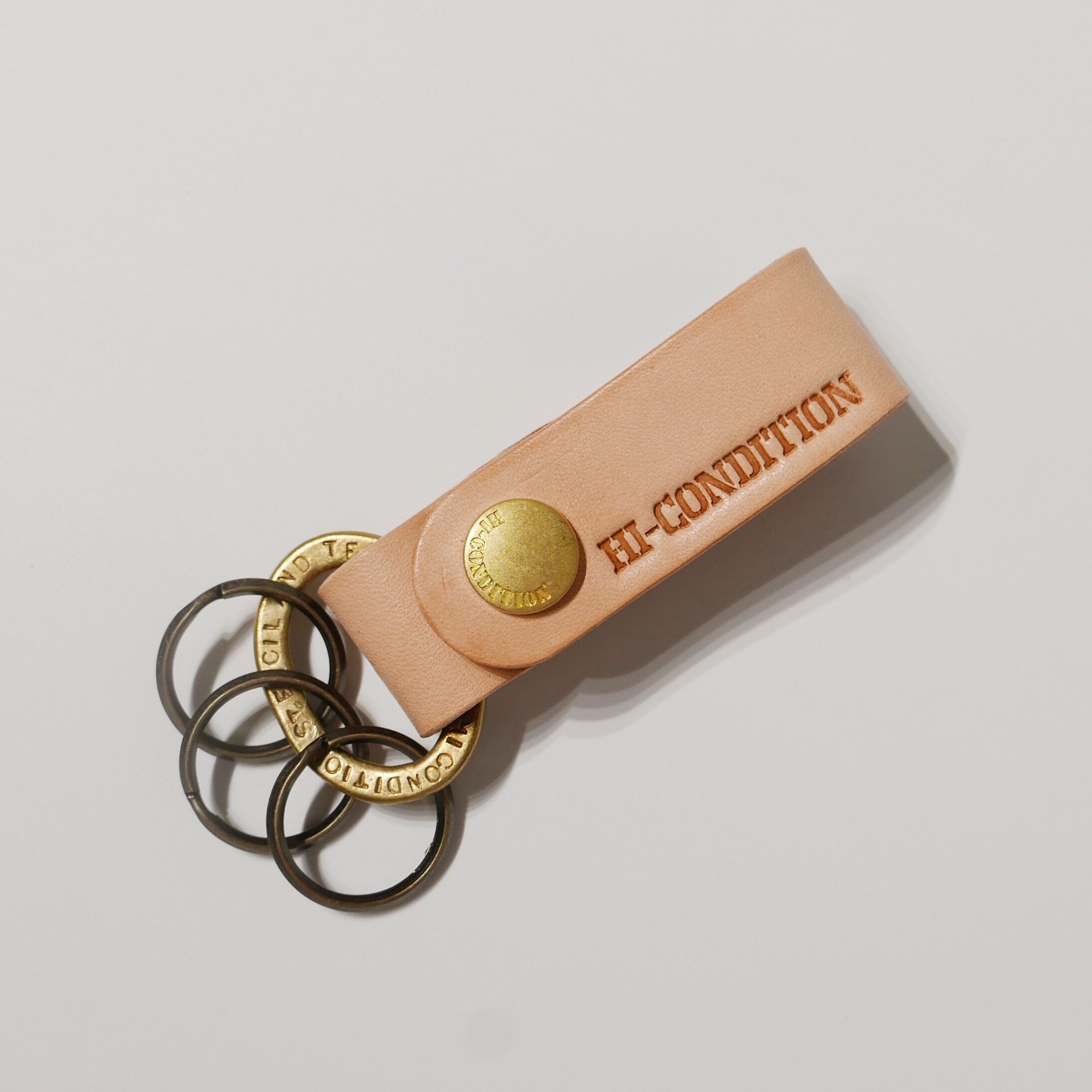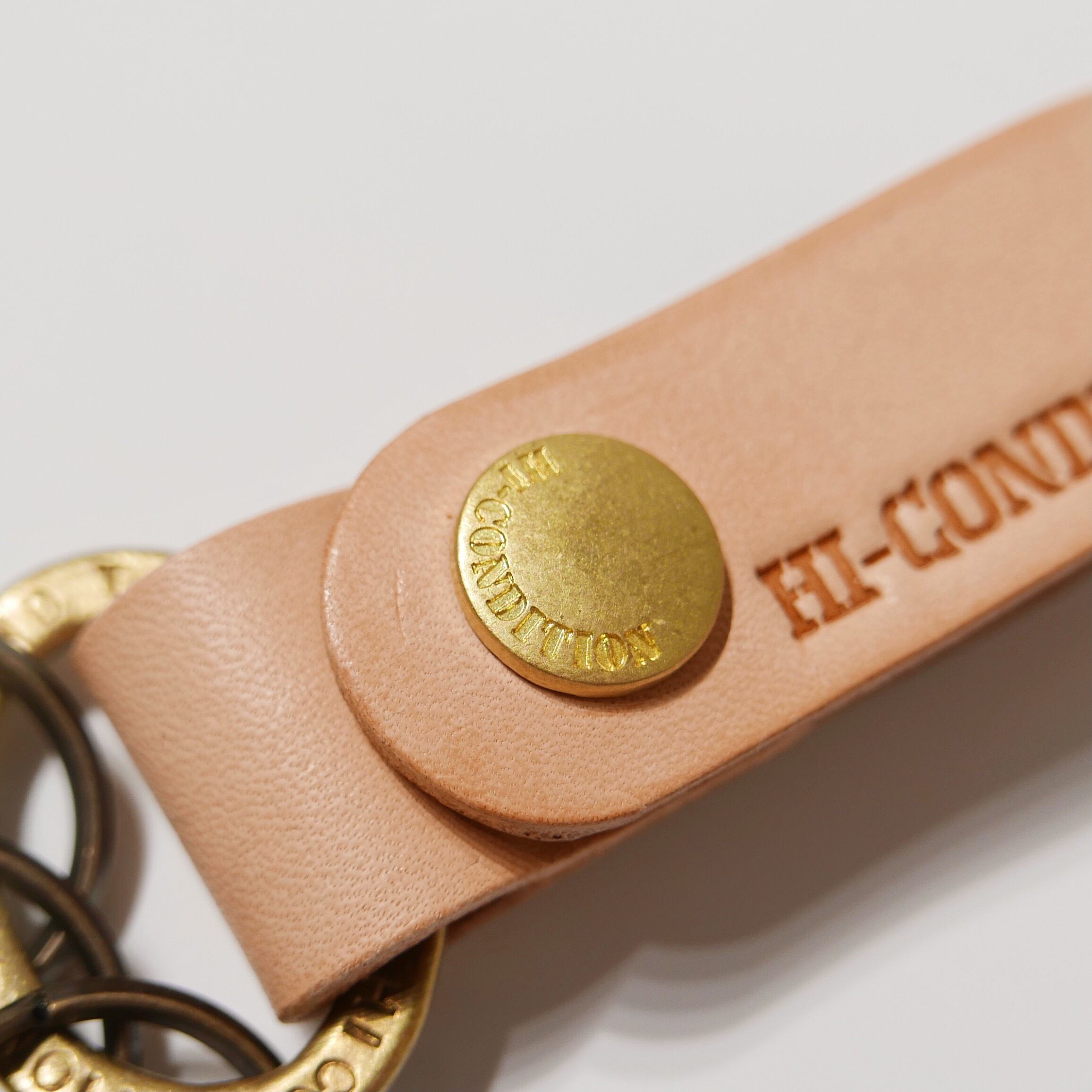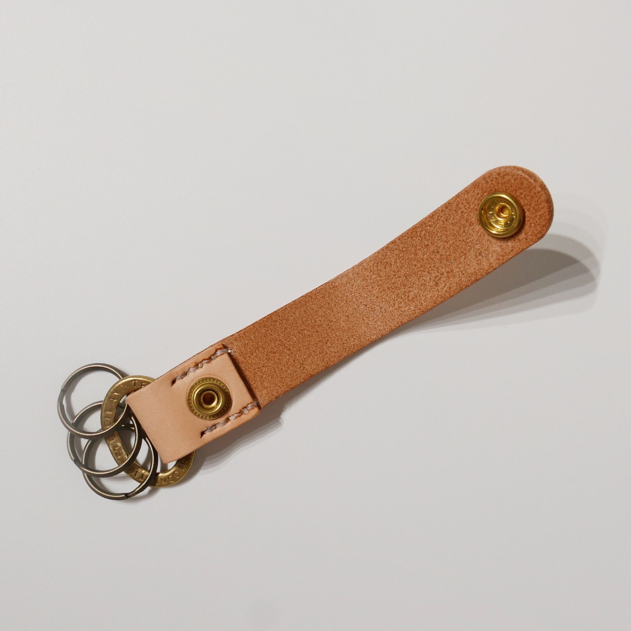 上質、厚手のヌメ革を使用して製作したキーホルダー。