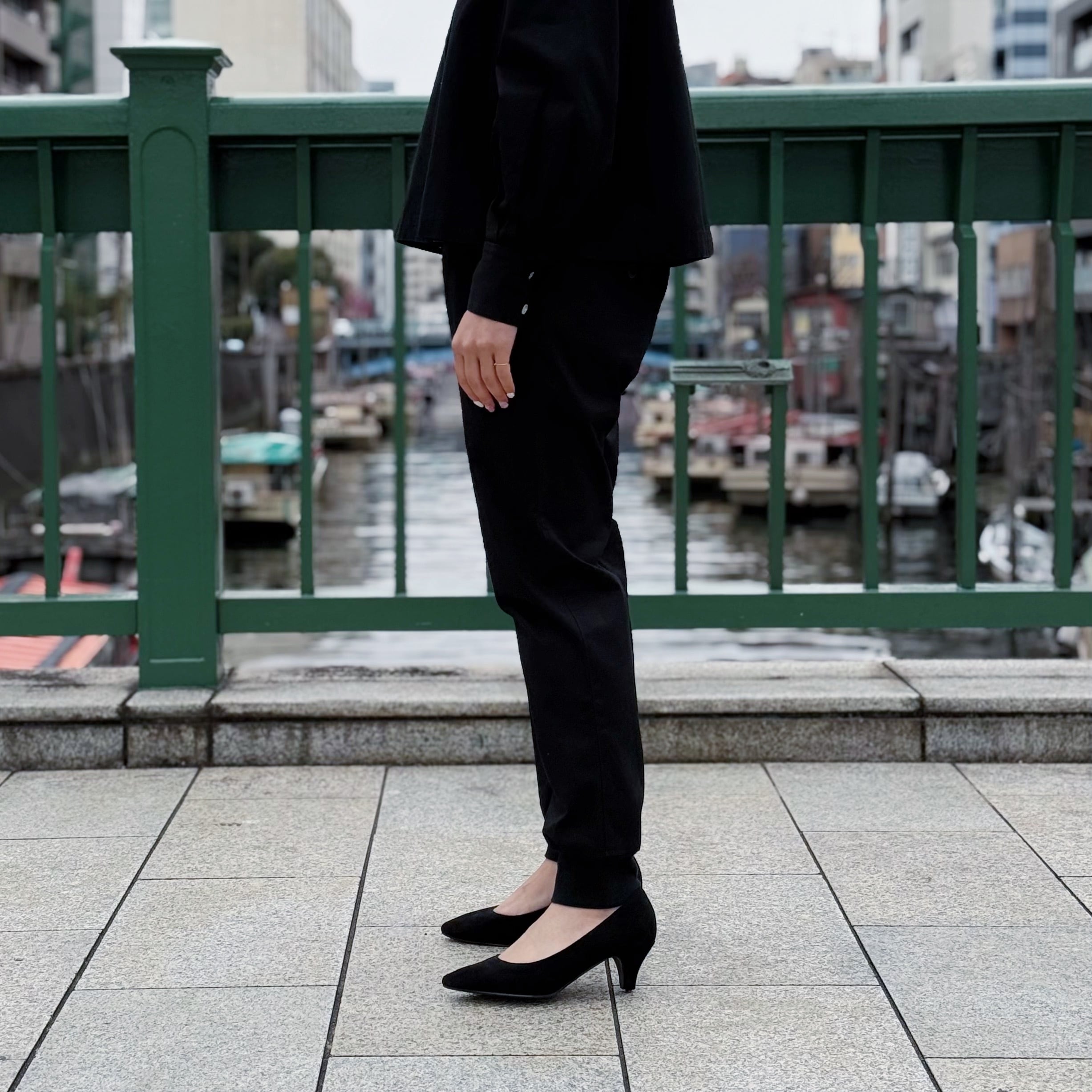 (BLACK) VENTILE STRETCH LONG PANTS