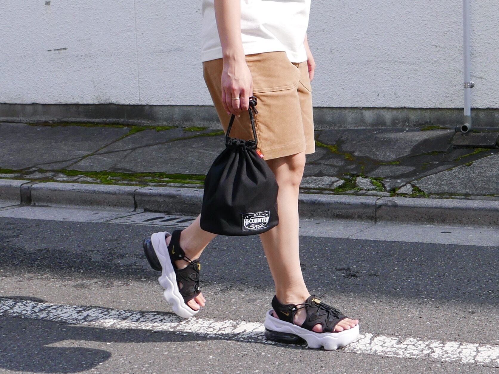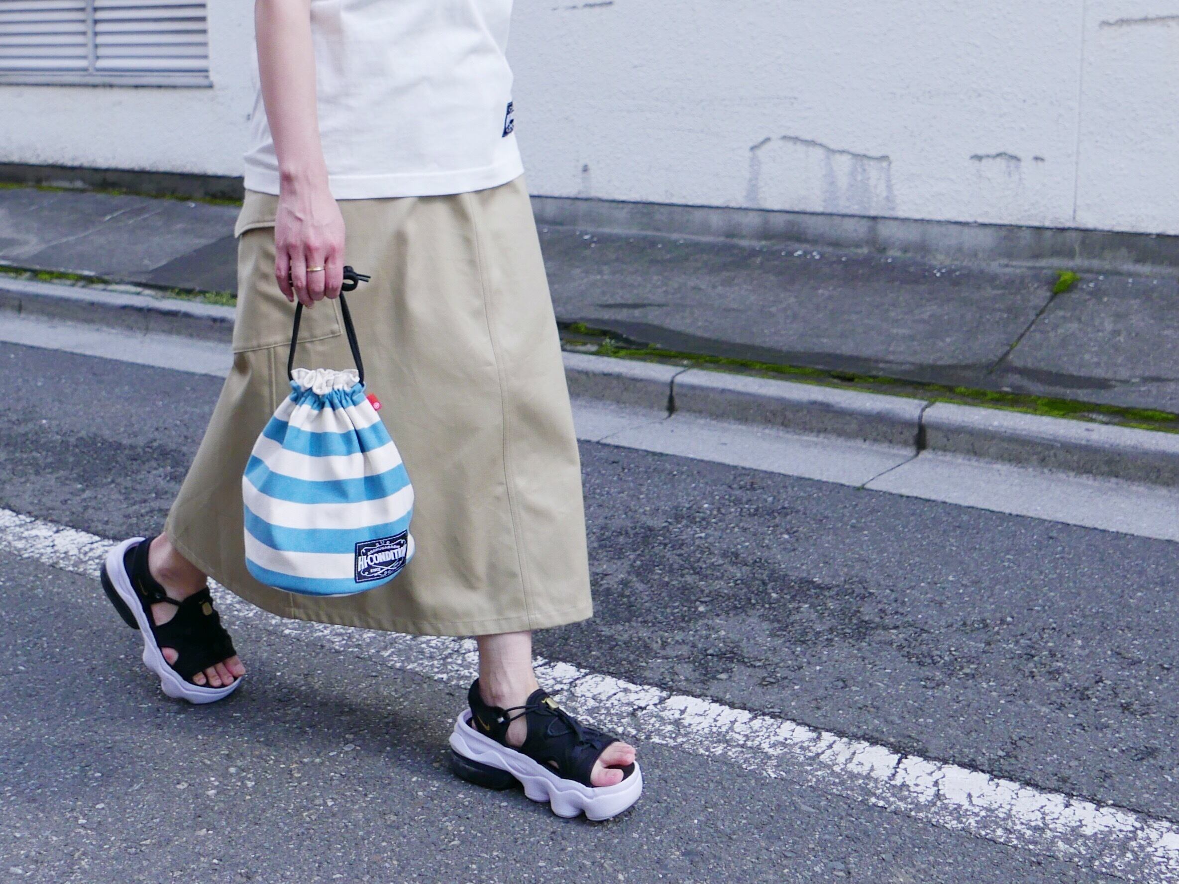 ぜひ、コーディネートのワンポイントに巾着バッグを合わせてください。