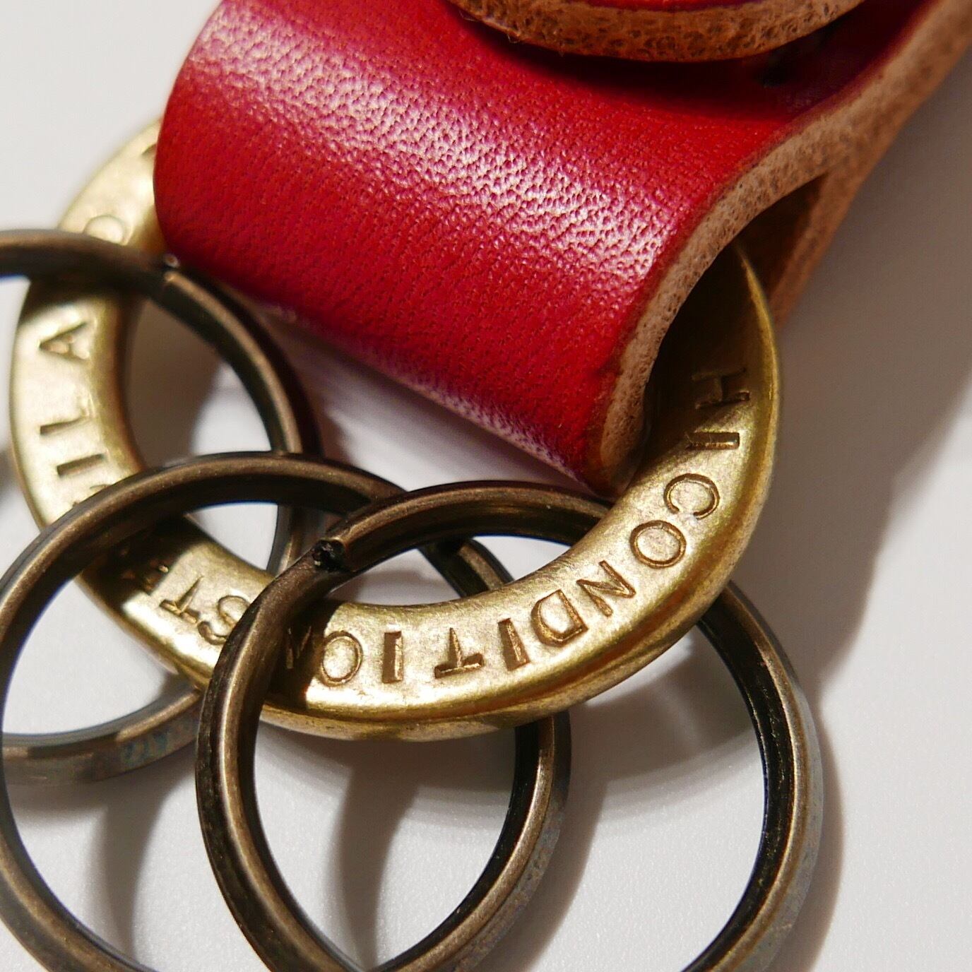 上質、厚手のヌメ革を使用して製作したキーホルダー。