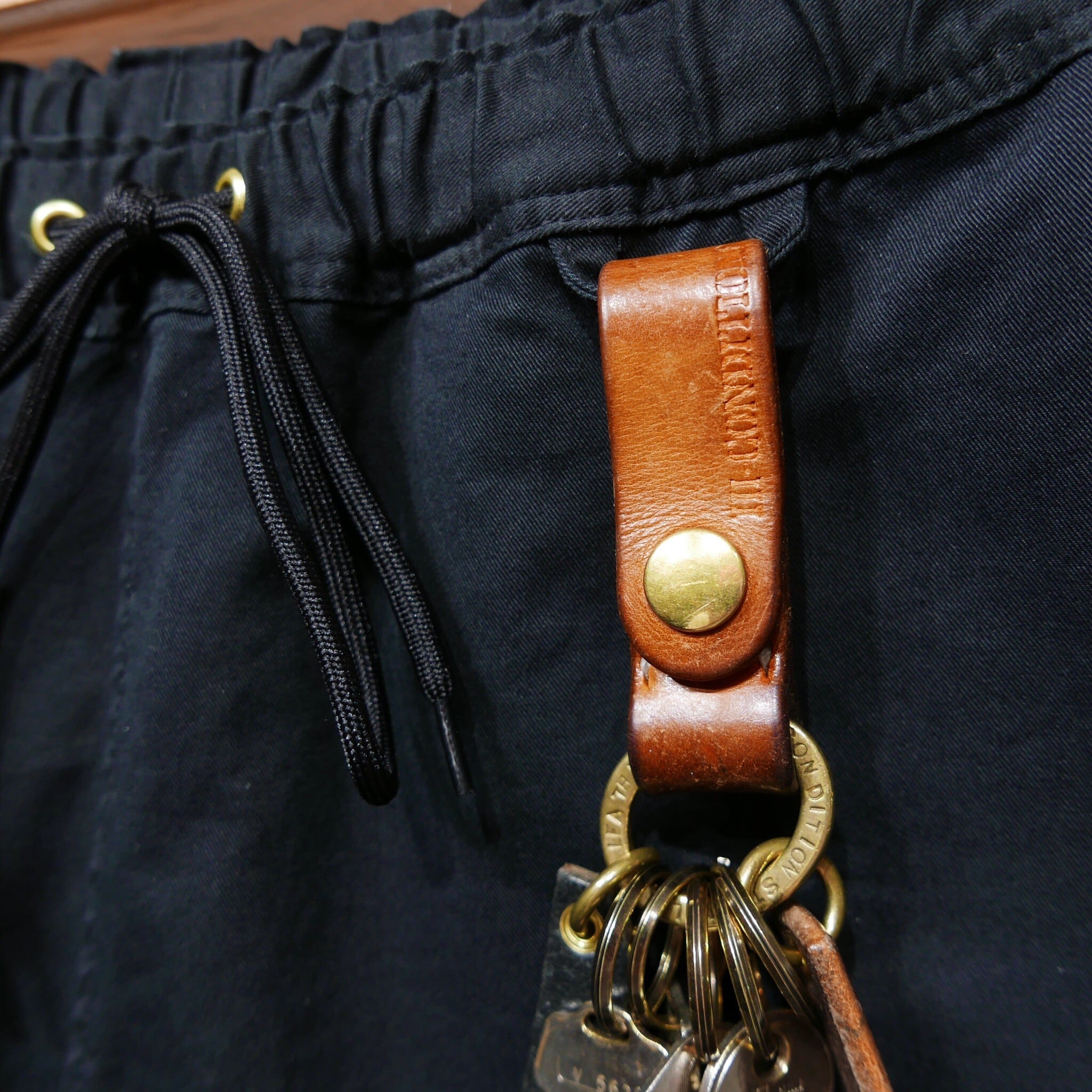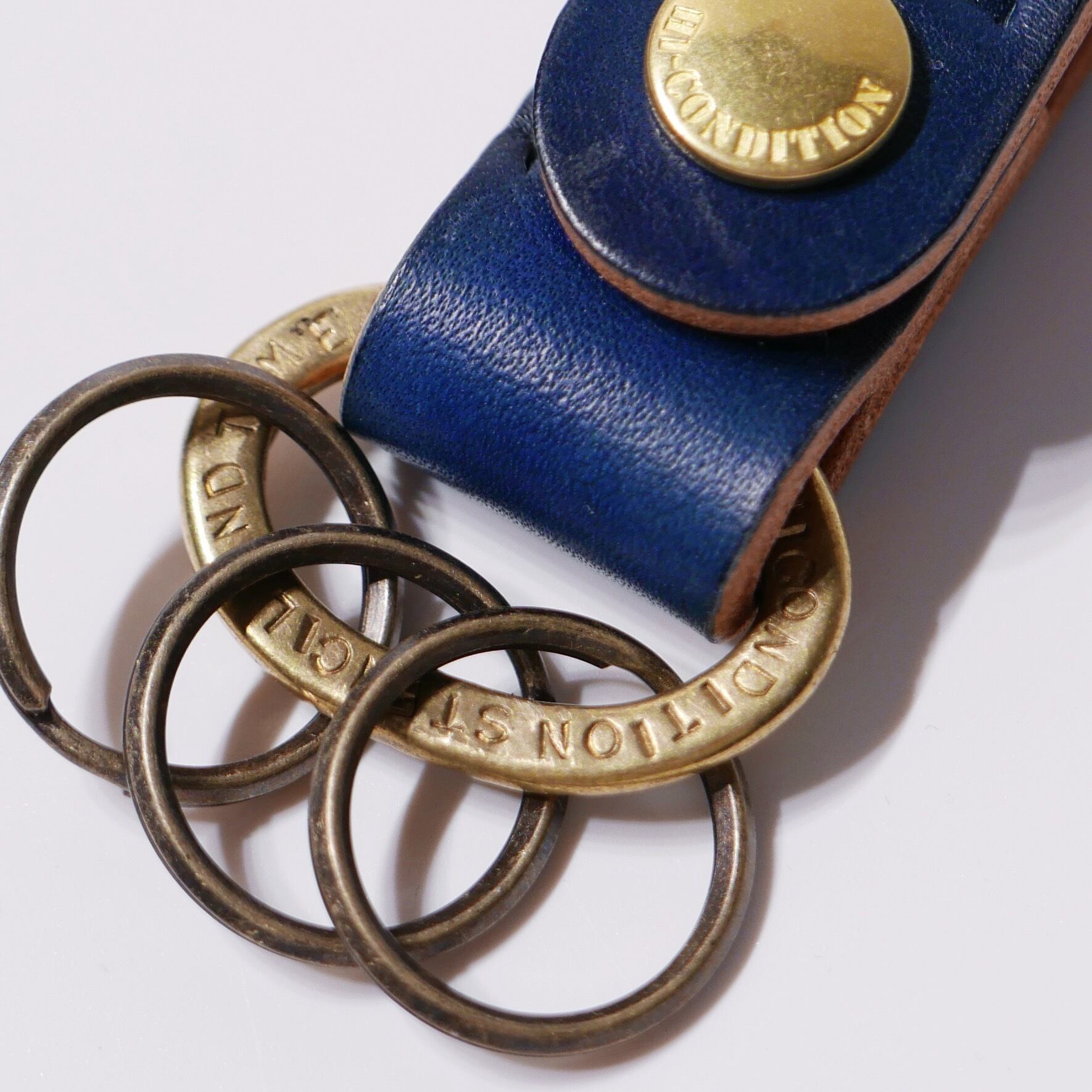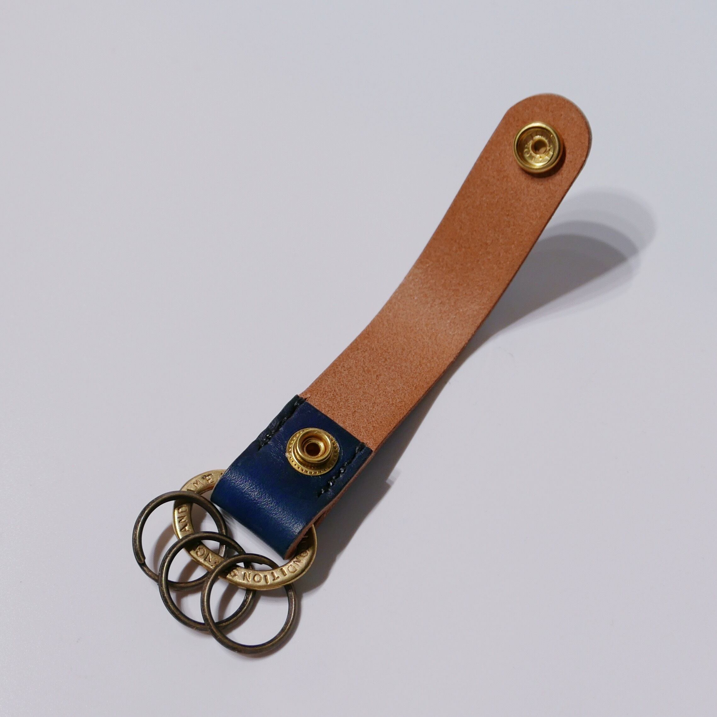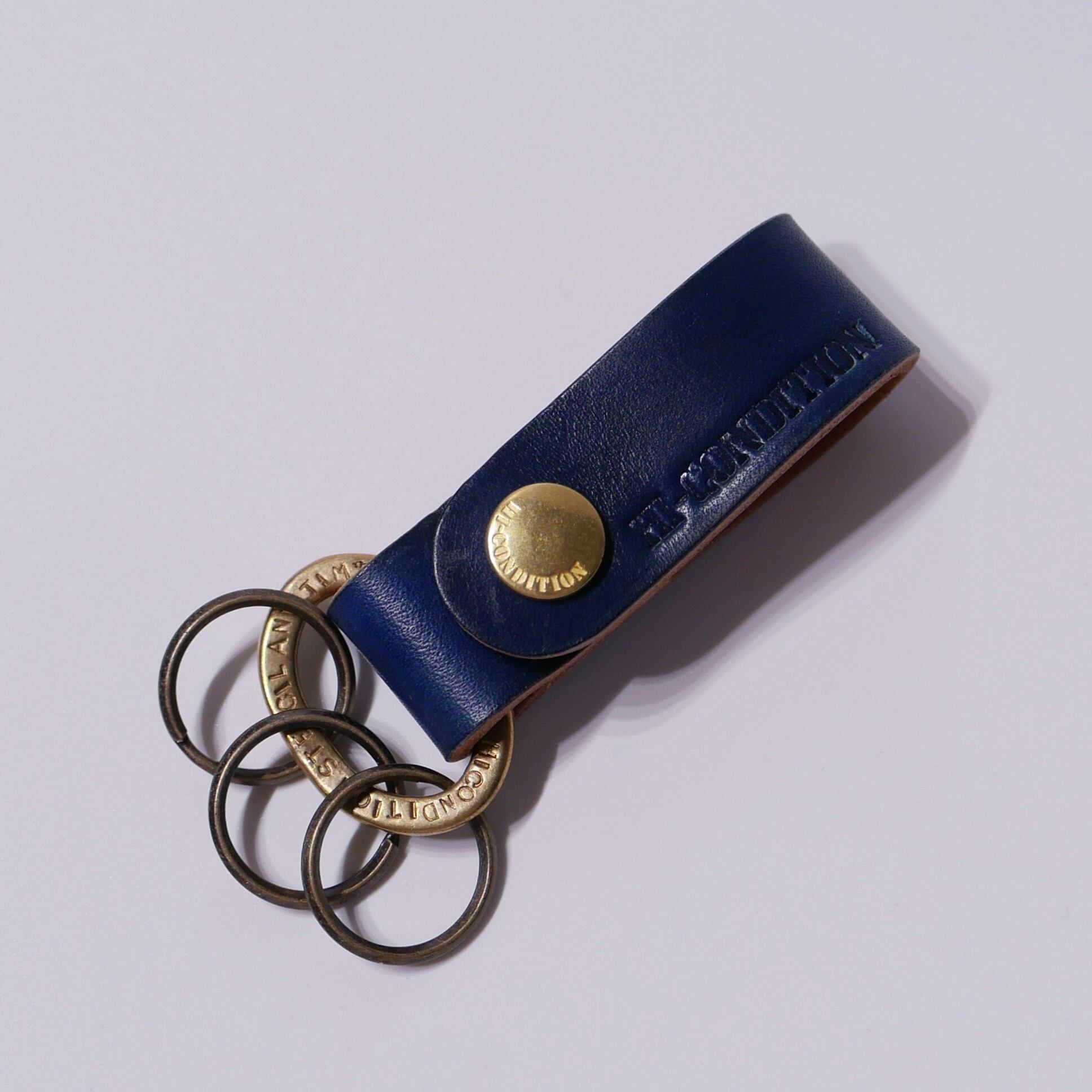 上質、厚手のヌメ革を使用して製作したキーホルダー。