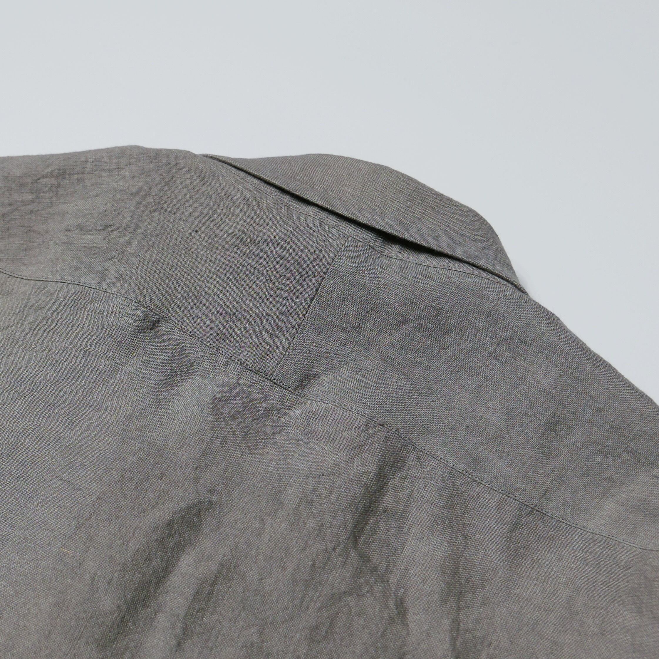 少ない量を丁寧に時間をかけて染め上げた独特な色味とシワ感、天日干しリネンの奥深い風合いを楽しんで頂けます。