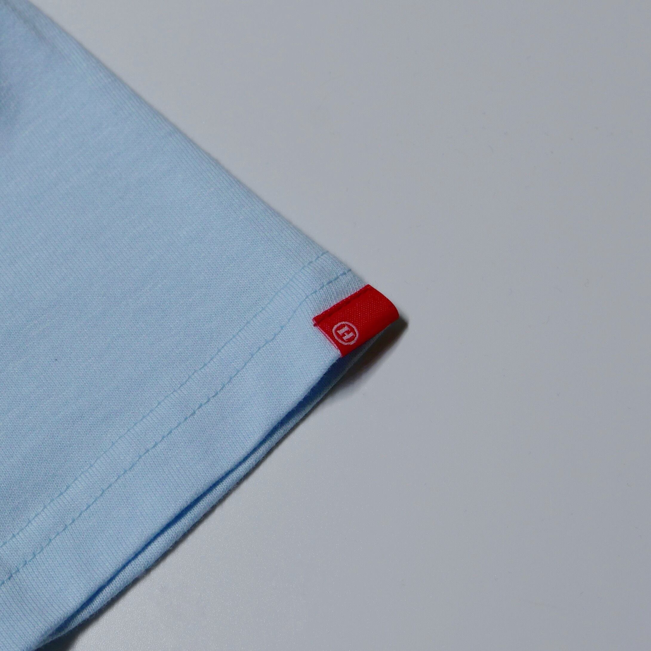 丈夫な首もとを実現するため、首まわりの縫製に「ダブルステッチ」を採用。