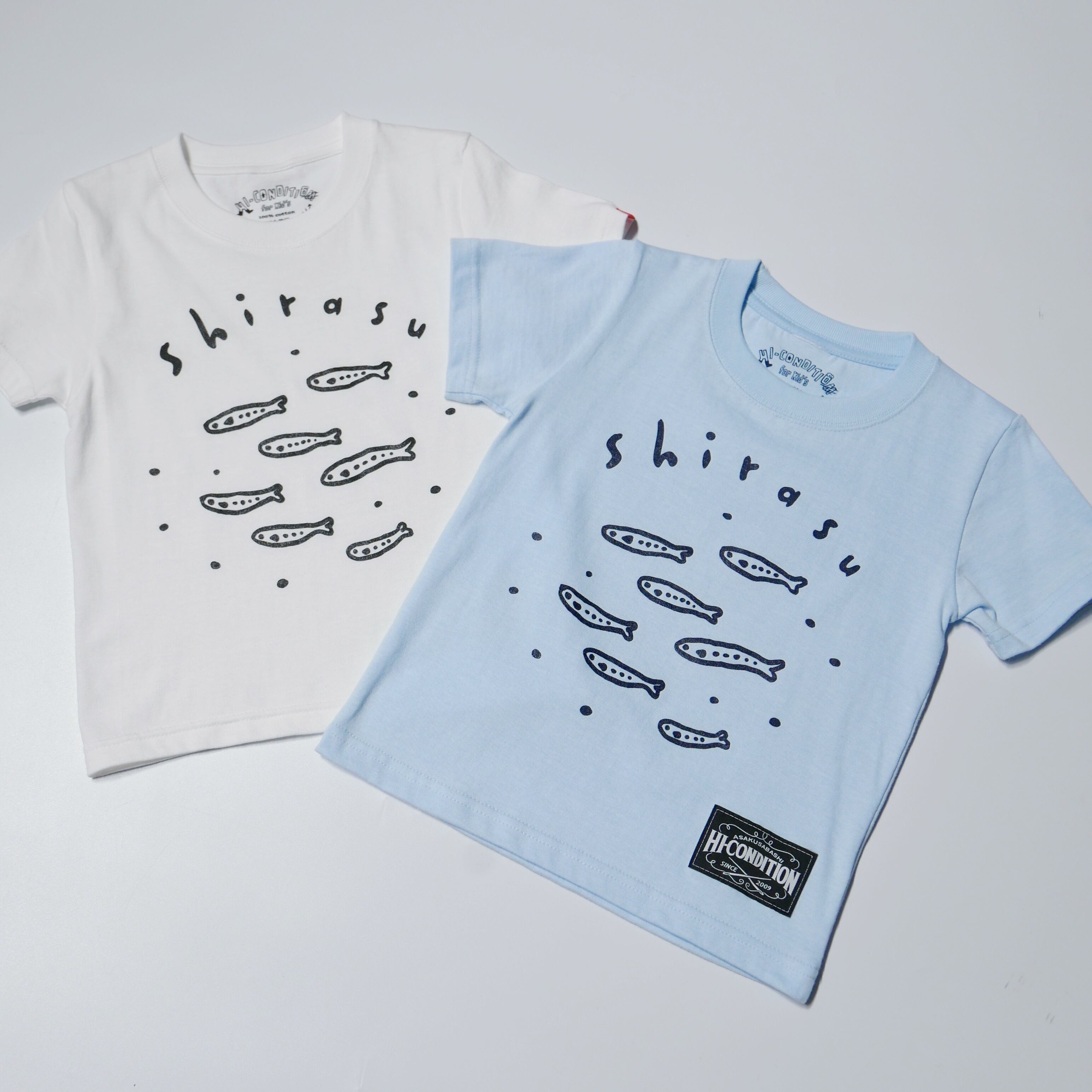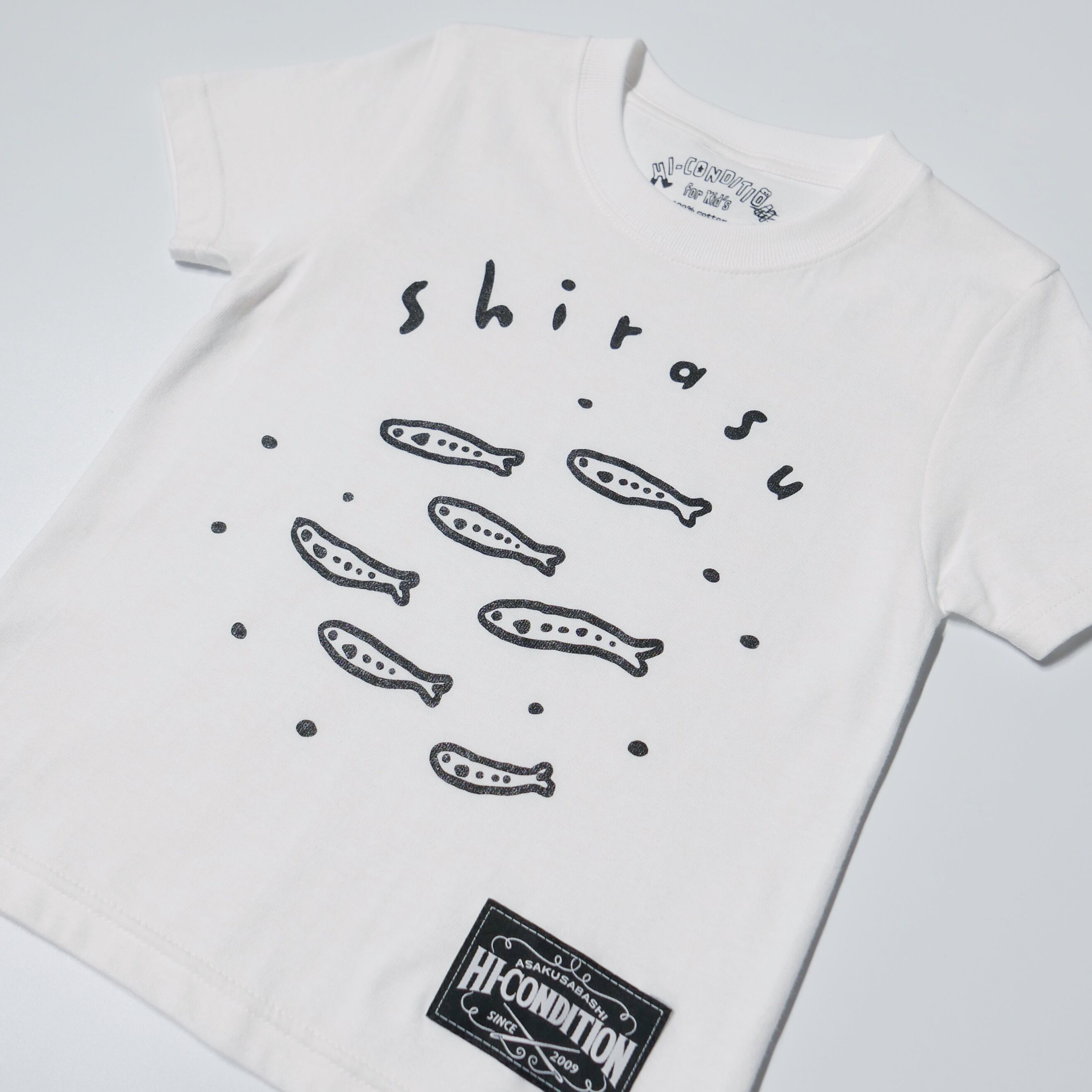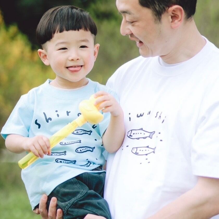 "出世魚TEE"は、シラスが成長してイワシになる過程をモチーフにしたTシャツです。