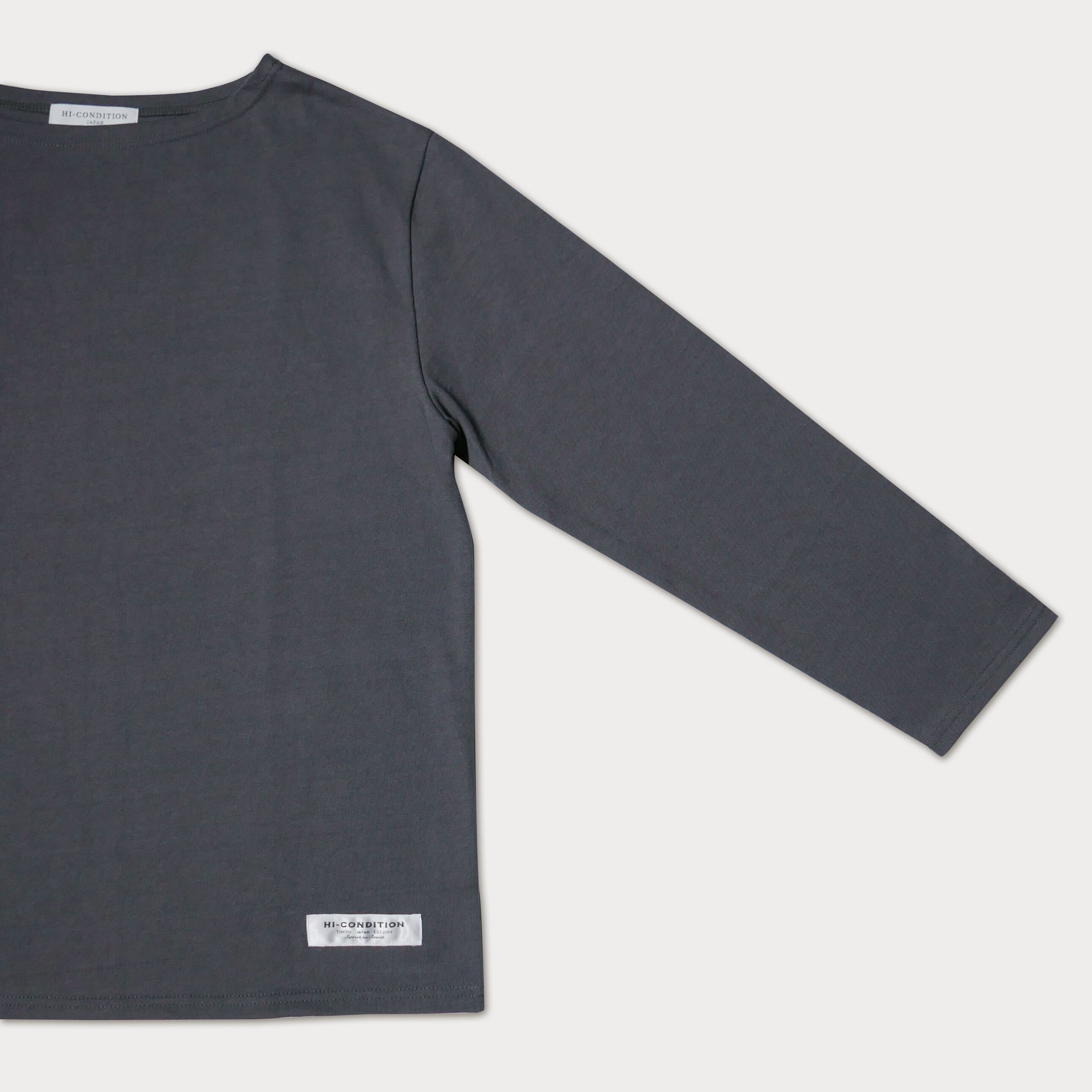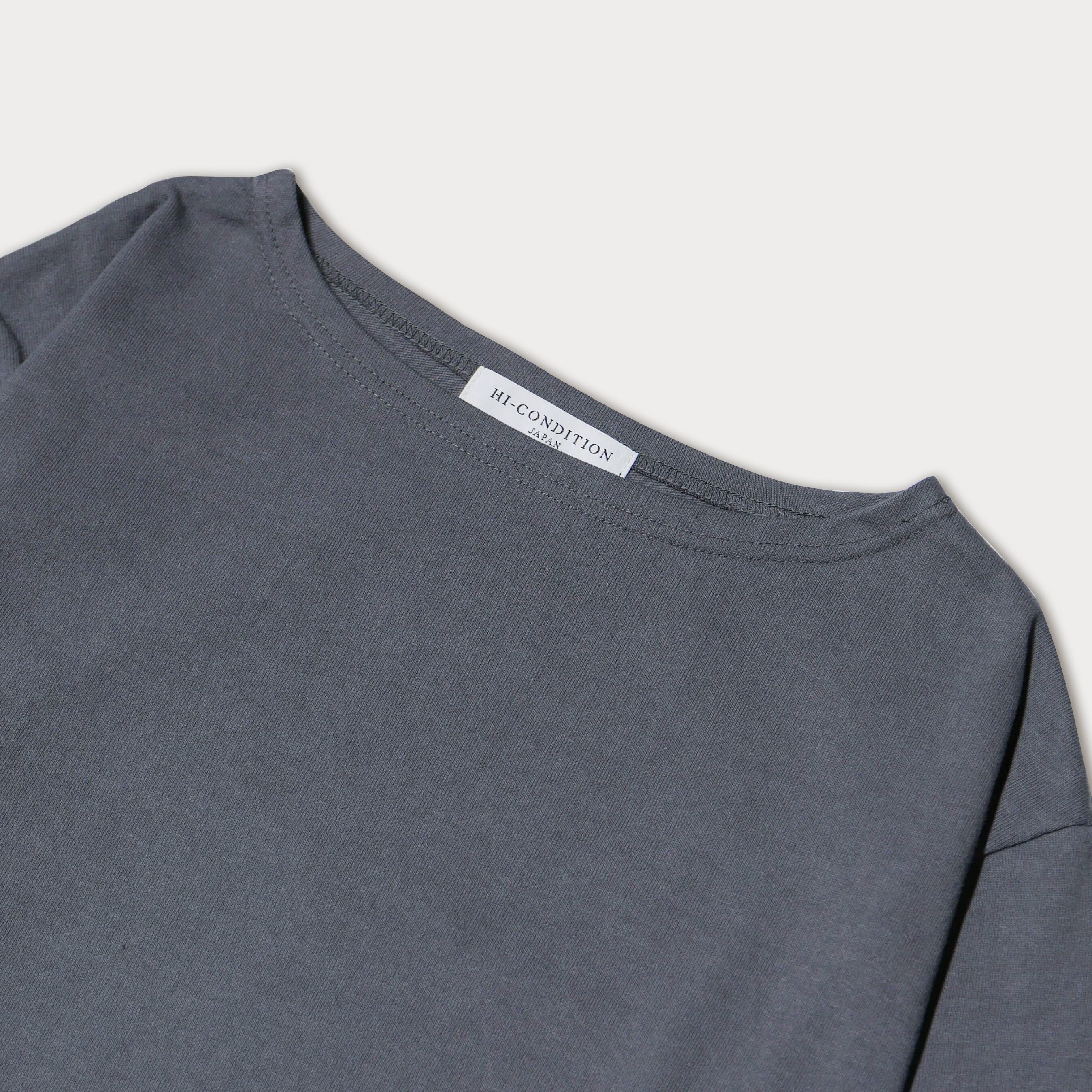 極太の空紡糸、ヘビーウェイト生地を使用したボートネックのロングスリーブTシャツ。