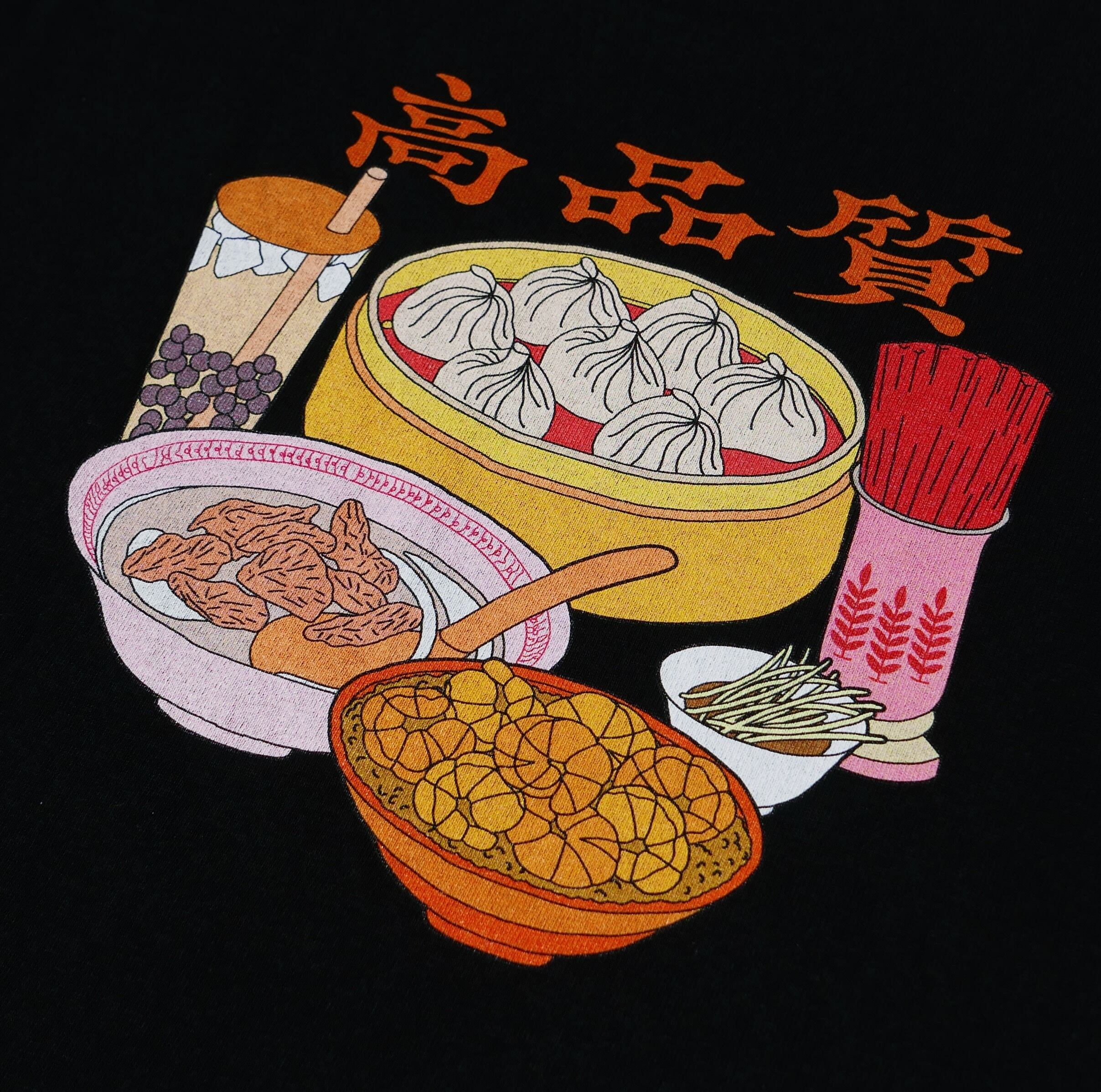背面には、小籠包、牛肉湯、タピオカミルクティーなど、臺南の食堂をイメージした鮮やかなイラストをプリントしました。